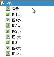 第四步.展开后,会看到 里面有9张图片,相对着背景就是页面背景图,图1小和图1大就是相对应的,小的是可以点击的小图,大的就是点击后观看的大图。
