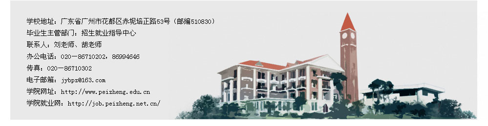 广东培正学院是一所经国家批准设立,招收国家任务生的非营利性全日制民办本科普通高等学校;是一所以管理学、经济学学科为主,文、法、理、工学科协调发展,强化英语应用能力和实践能力的财经类院校。学院创办于1993年;2005年经国家教育部批准升格为本科院校;2009年顺利通过本科学士学位授权评审,获得学士学位授予权;2011年获得本科插班生招生资格。学院坚持以就业为导向,以社会发展需要为准则,贯彻“公益办学、规范办学、诚信办学、特色办学、质量至上”的办学理念,以改革和创新人才培养模式为核心,实行学分制,全面提高学生的创新能力、创业能力和实践能力,培养适应经济社会发展需要、具有较扎实的专业基础、较强的实践能力和英语应用能力的高素质的应用型人才。