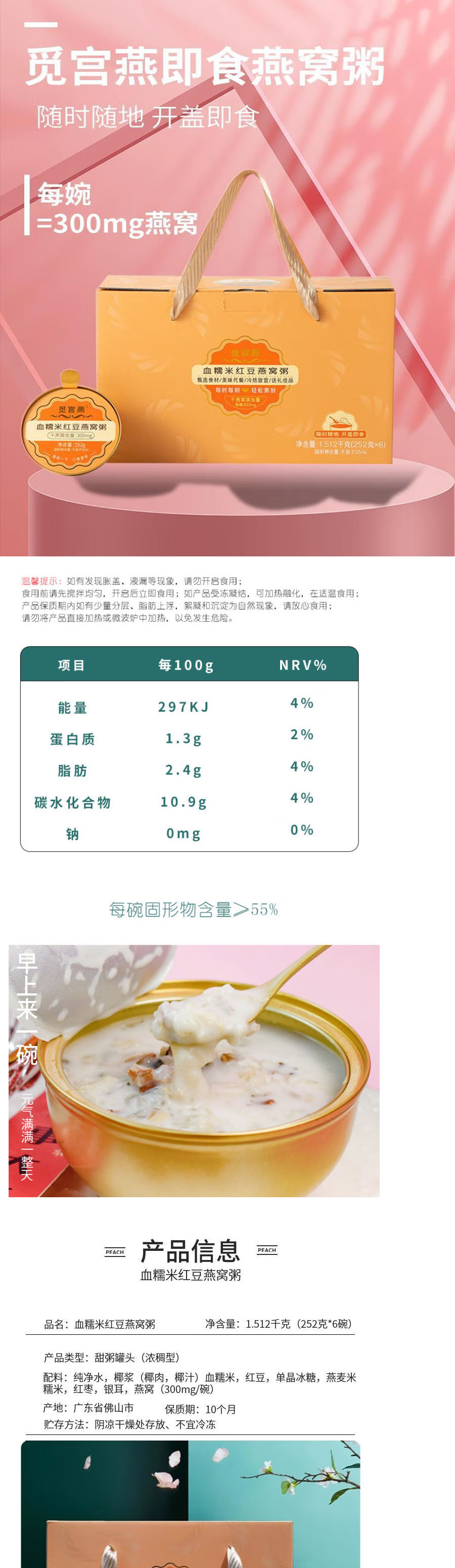 休闲零食> 【觅宫燕】血糯米红豆燕窝粥252g*6